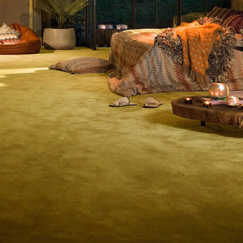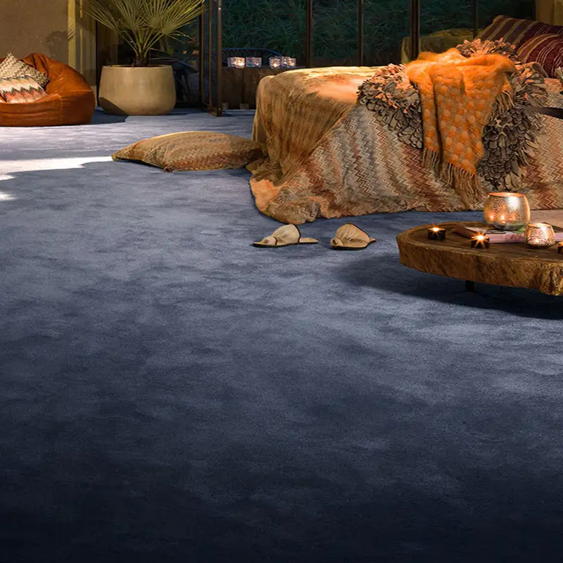 Lush carpet types, e.g,. Cut pile and ’Saxony’s’ and shaggy’s, i.e,. Those with a long pile are great for bedrooms. Warm to the touch and soft underfoot, they also help dampen sound — a handy feature in restful rooms.