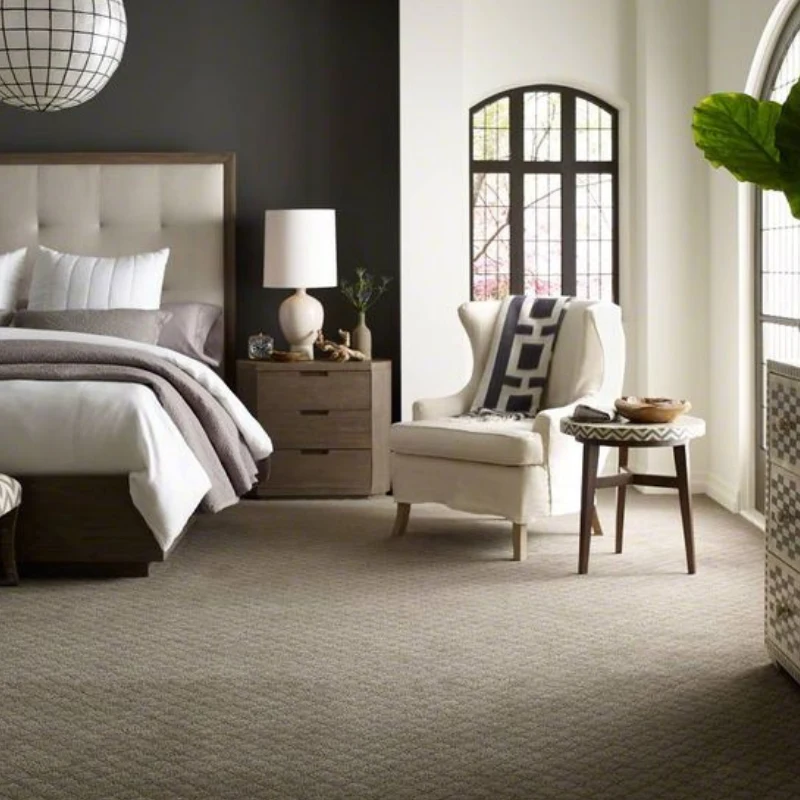 Stylish bedroom sitting area carpet adding warmth and comfort