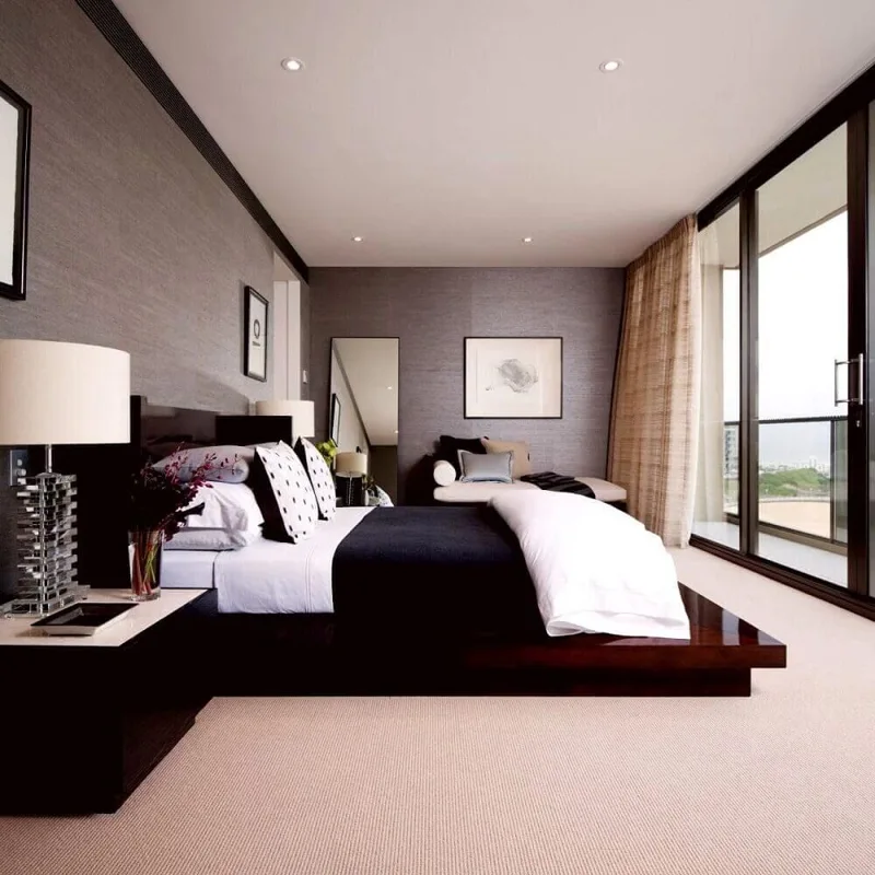 High-quality carpet design enhancing master bedroom Dubai interiors